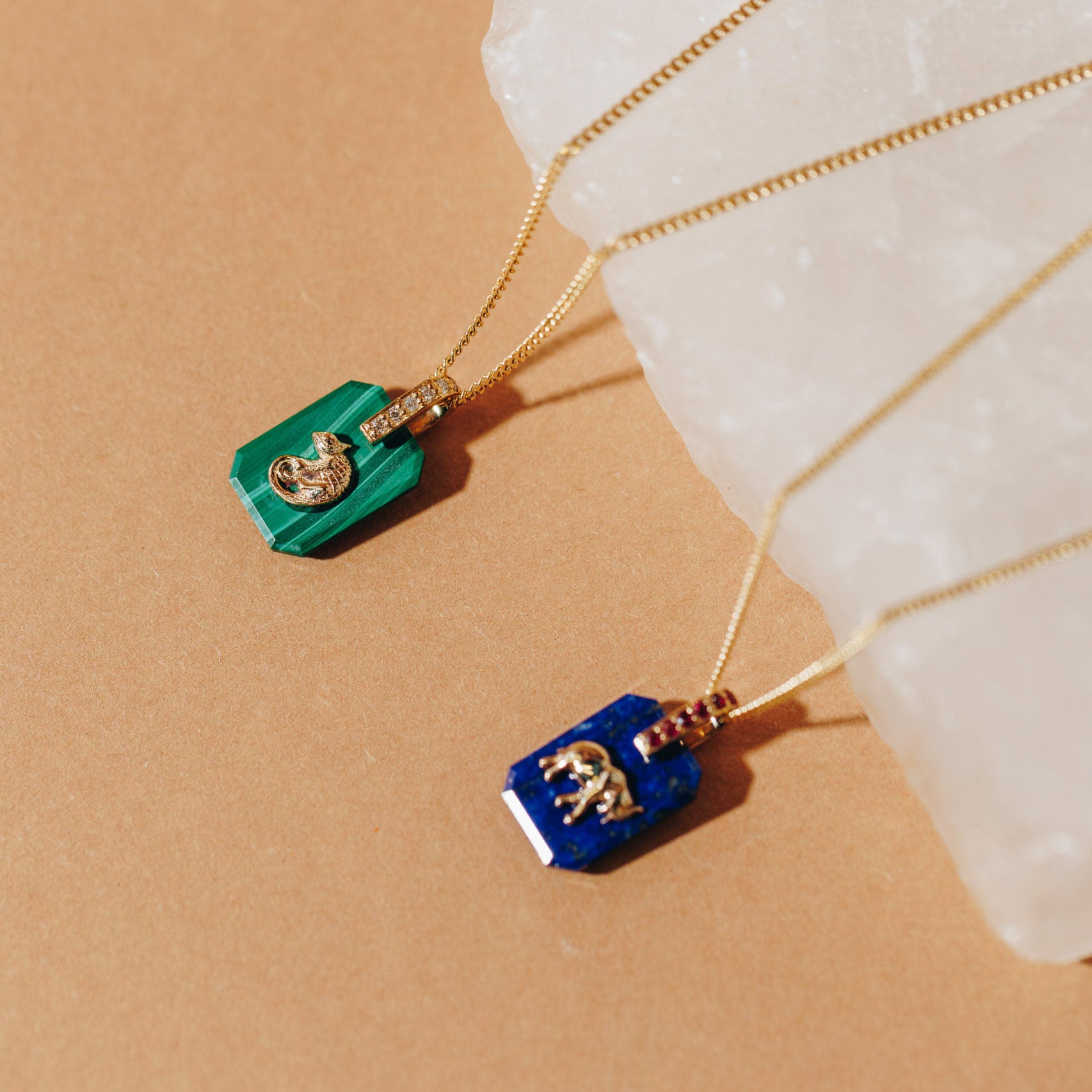9kt yellow gold slab with Malachite and Diamonds (0.04cts).