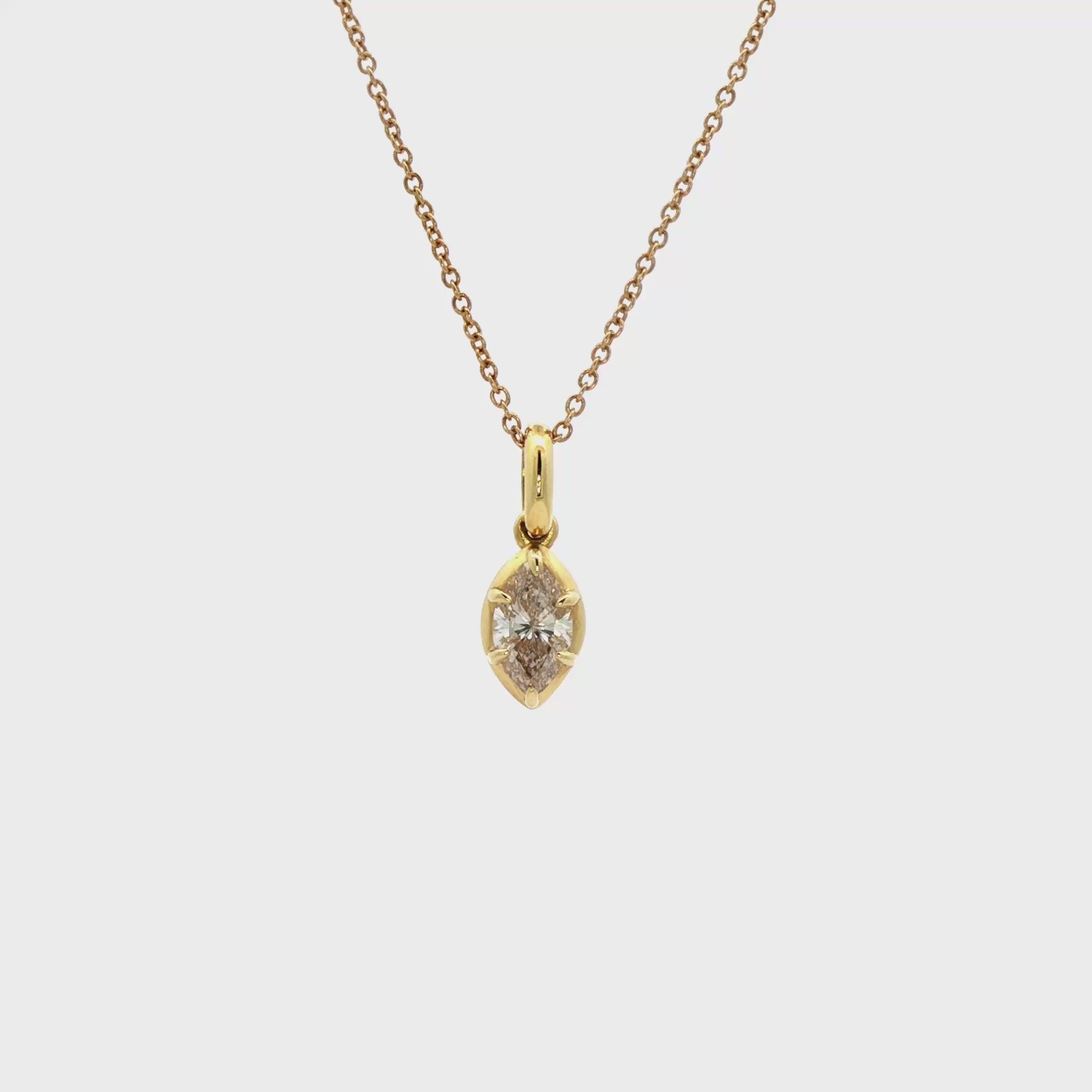 18kt yellow gold pendant set with a marquise-cut Diamond (0.55ct), M color, VVS2 clarity.