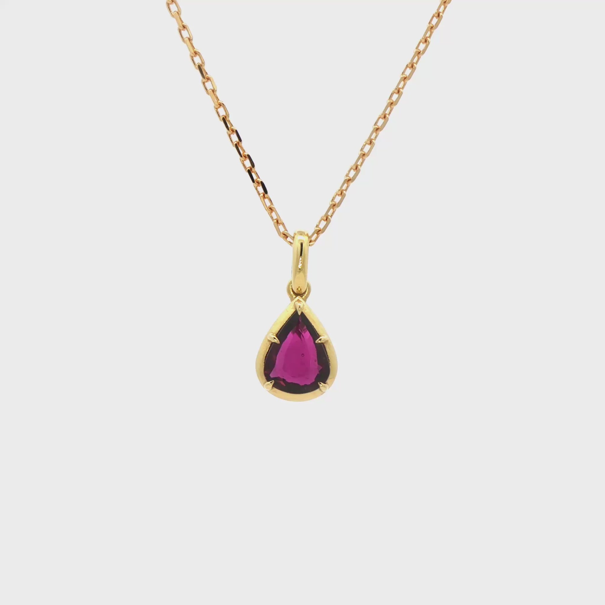18kt yellow gold pendant set with a pear-shaped Rubellite (0.96ct).