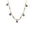 18kt yellow gold pearl necklace set with five carved flower Tanzanites (7.2ct) and five round brilliant-cut Diamonds (0.0665ct) of GH color and VS clarity, 45cm in length.