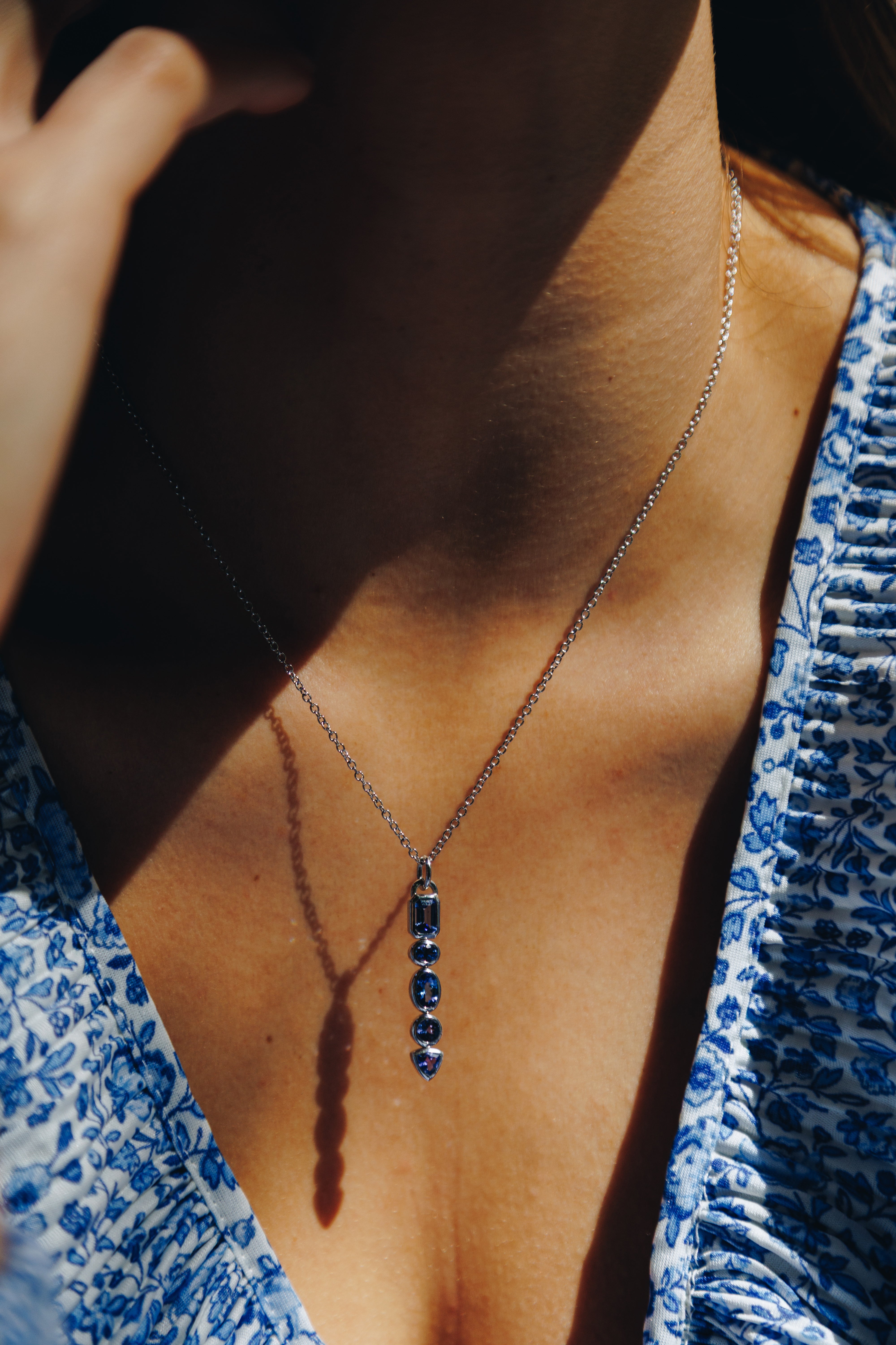 18kt white gold multi Tanzanite pendant set with five assorted Tanzanites (1.69ct).